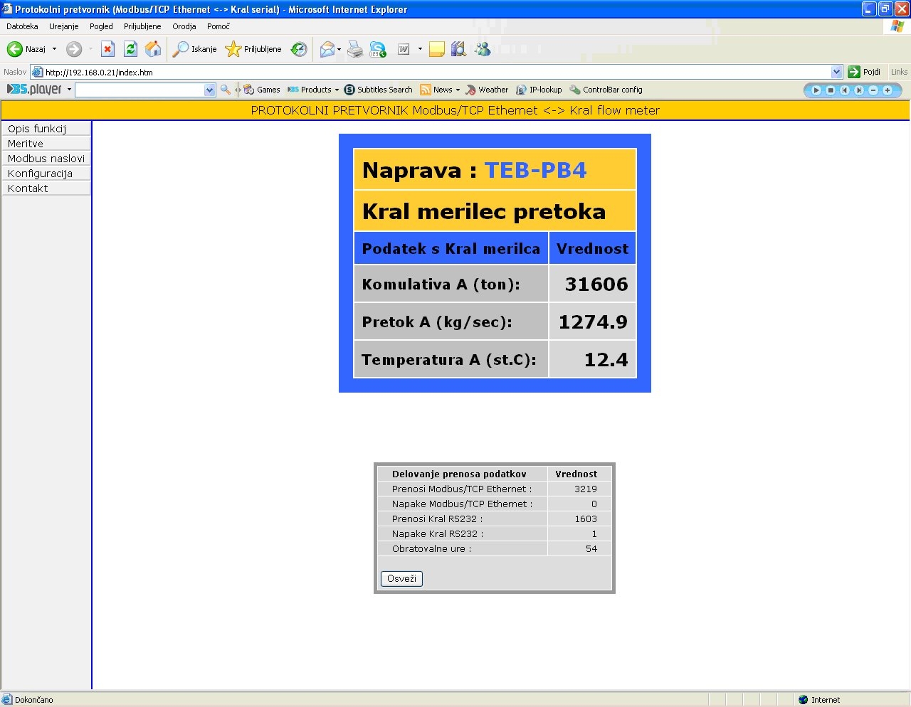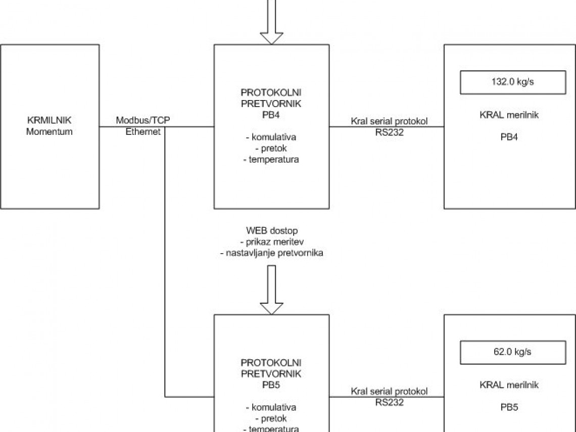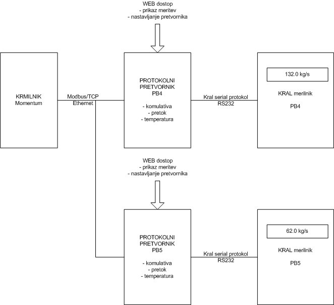 V Termoelektrarni Brestanica so želeli merilce porabe goriv KRAL neposredno povezati na merilni in nadzorni sistem porabe goriv. V ta namen je bil izdelan protokolni pretvornik, ki se na eni strani pogovarja z merilnikom pretoka in porabe goriv (KRAL) po serijski liniji, na drugi strani pa podatke pošilja po Ethernet omrežju (po Modbus Ethernet protokolu) na krmilni sistem.